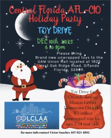 Join the Central Florida LCLAA Chapter and the Central Florida AFL-CIO for a holiday party to support our children in Orlando.