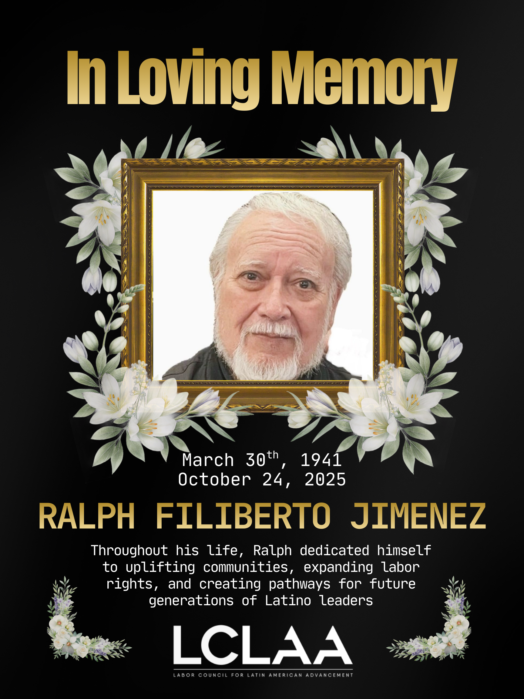 Honoring the Life and Legacy of Ralph Filiberto Jimenez, former LCLAA President.