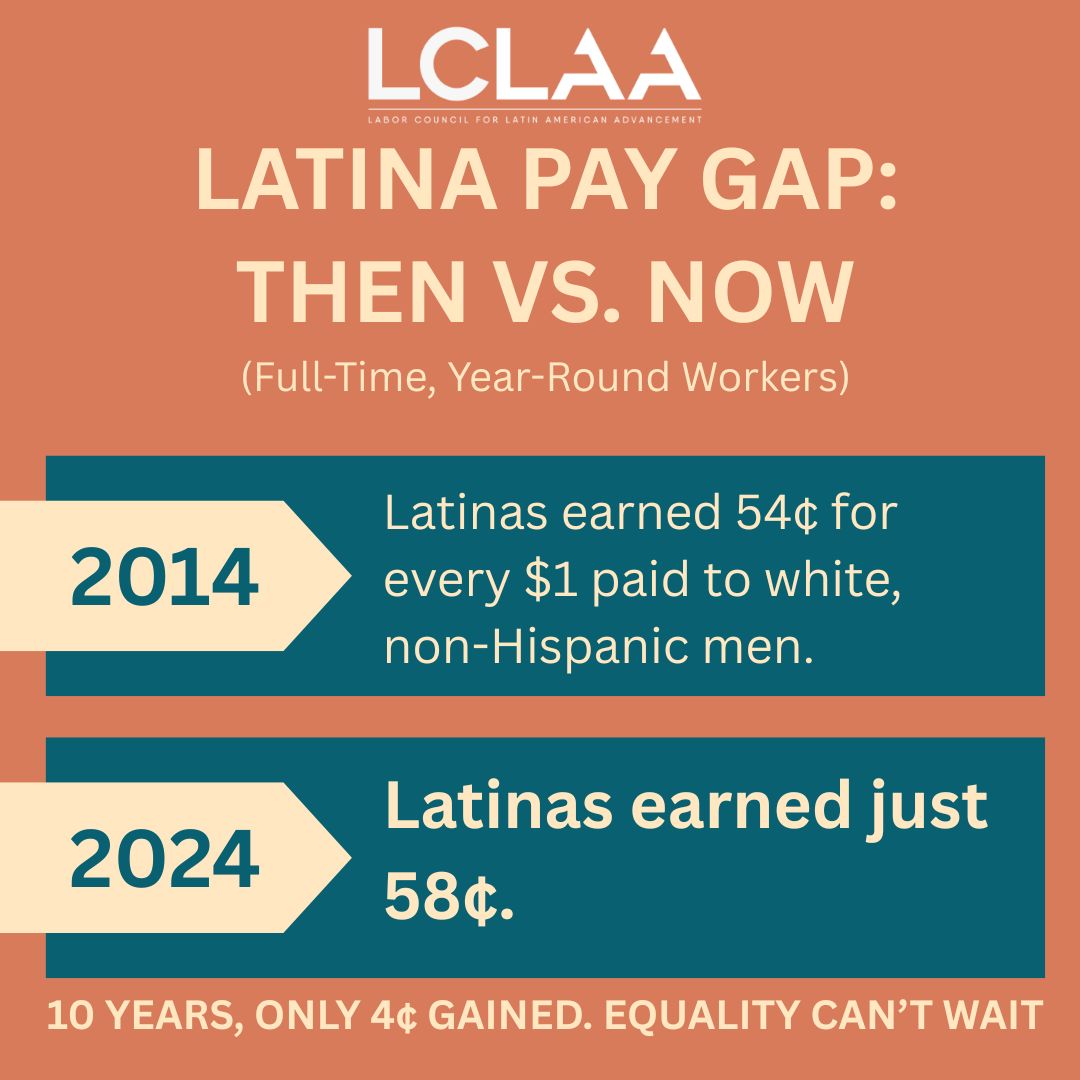 10 Years of the National Latina Equal Pay Campaign: The Fight for Justice Continues ✨ For a decade, we’ve united to demand pay equity and shine a light on the wage gap that robs Latinas of thousands each year. Join us on October 8th Use the hashtags: #LatinaEqualPay #Trabajadoras and tag our partners @lclaa @mujerxsrising @equalpay2dayorg @equalrightsadv